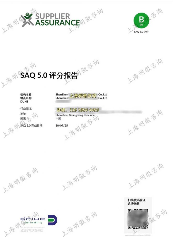 祝贺!某家客户SAQ评分获得89分,获B级!