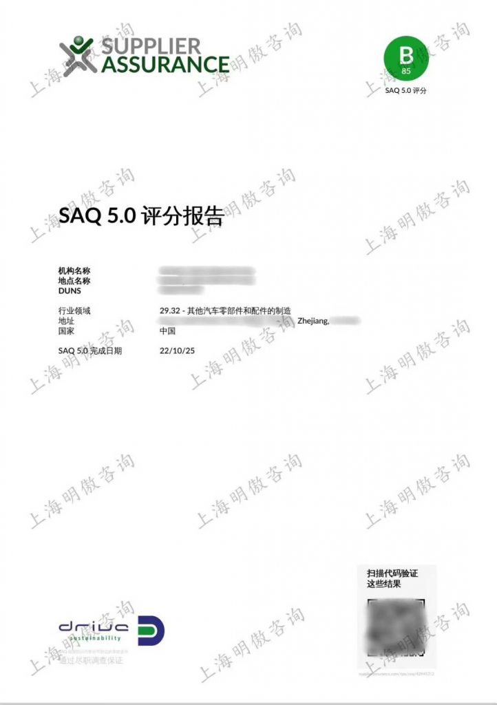 祝贺!某家汽车零部件公司SAQ5.0评分80分,获B级!作者: news / 2025年10月24日 2025年10月24日 几个月前辅导的一家汽车零部件公司,SAQ评估当时就拿到了80分并达到了客户要求。近期企业又增加了外部认证,明傲协助其继续提分。正如企业所言,如今生意不好做,评分比同行高一点,合作可能就会稳一些。
