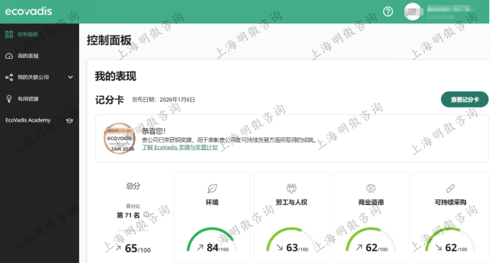 优异的ESG评级从不凭空而来。无论是EcoVadis全球前2%的突破,还是SAQ首次参评即获高分,背后都是企业对可持续发展的战略投入,当然,也离不开ESG顾问的专业赋能。我们深耕ESG领域,为企业量身定制提升方案,助力企业在环境管理、劳工权益、商业道德等核心维度全面升级。