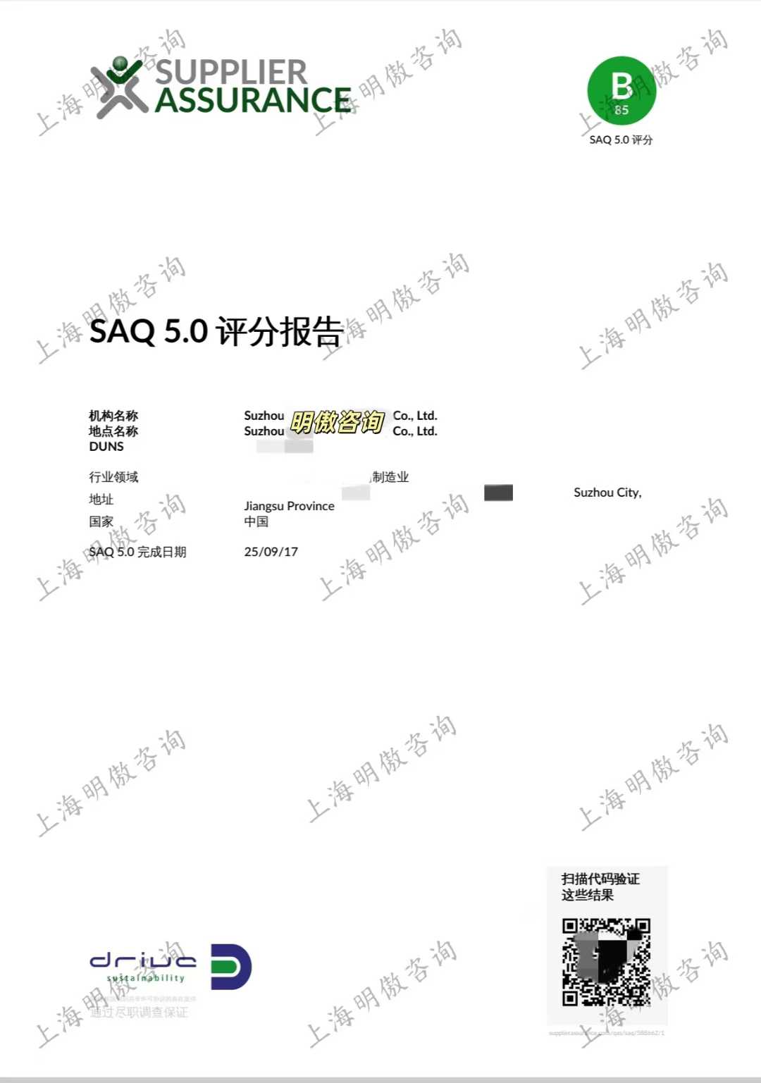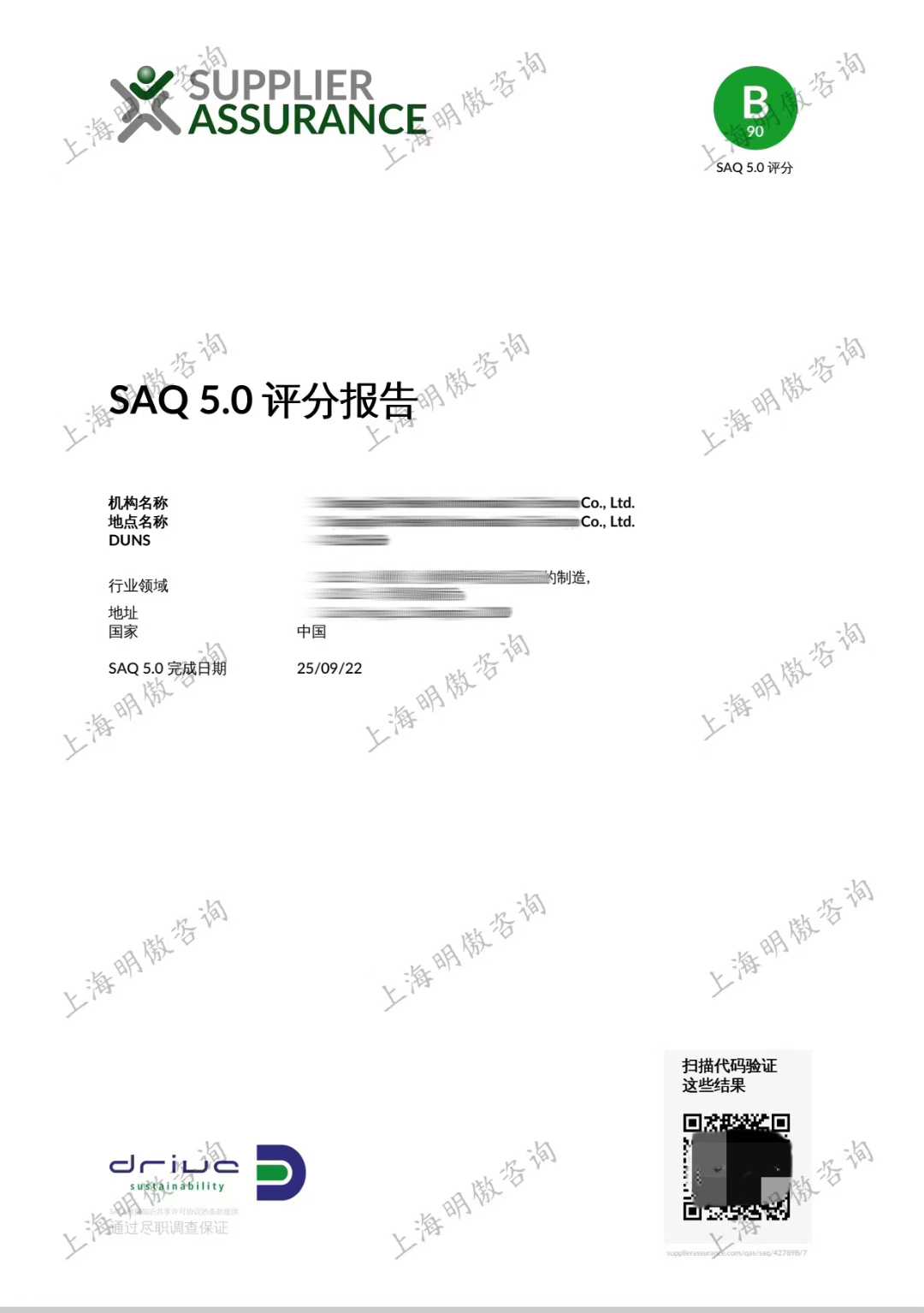 近几天又协助了2家大众、吉利和舍弗勒汽车零部件供应商完成了SAQ 5.0可持续发展评估,分别获得B80和B90