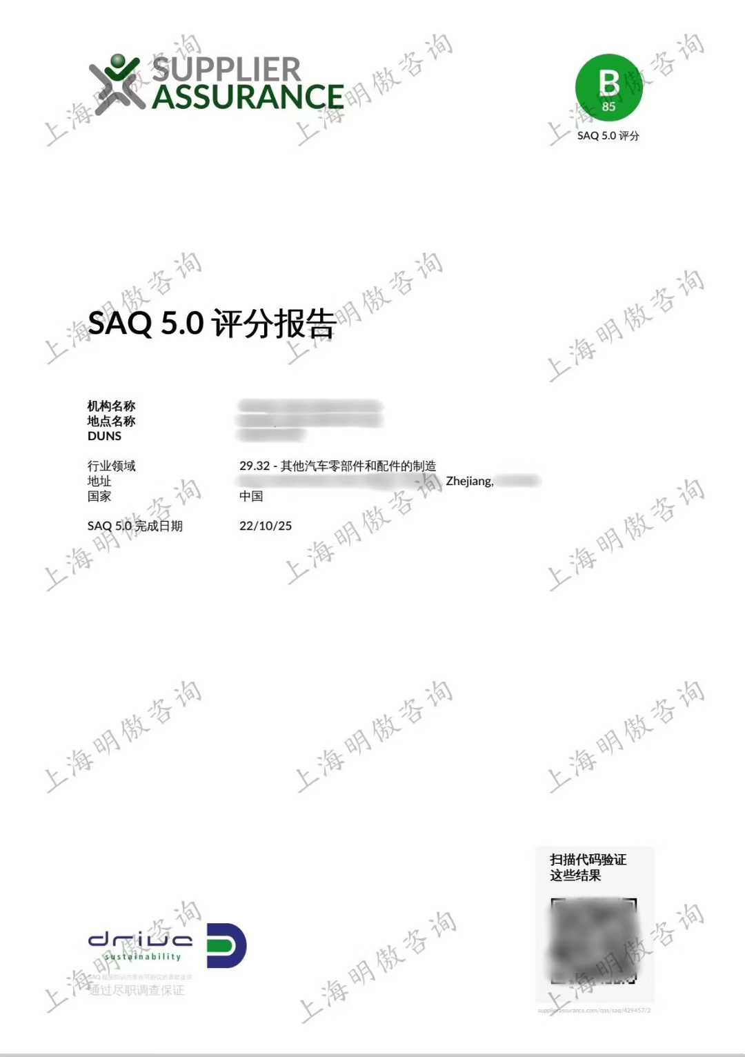 作为汽车行业社会责任评级项目,SAQ5.0已被越来越多整机厂及外资零部件公司所采用。上周又一家SAQ评级发布,